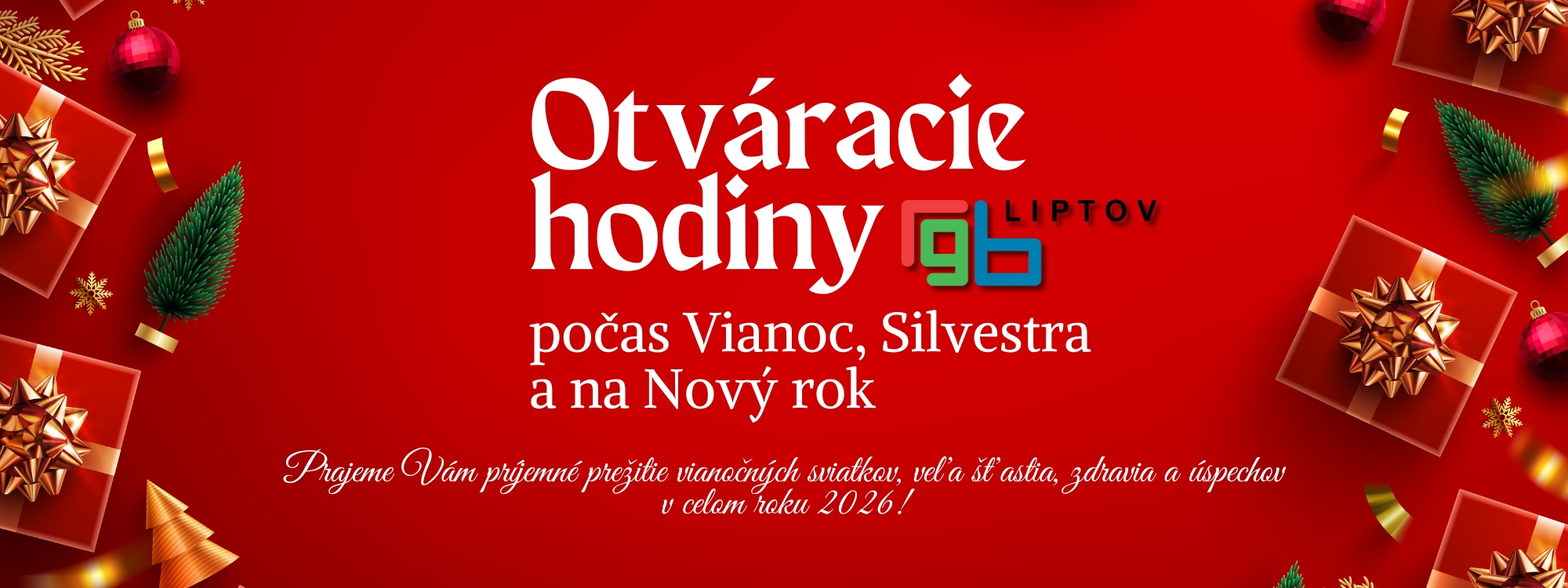 Vážení návštevníci obchodno - zábavného centra RGB Liptov, počas blížiacich sa vianočných sviatkov, Silvestra a na Nový rok sa menia aj OTVÁRACIE HODINY nášho centra, a to nasledovne:
